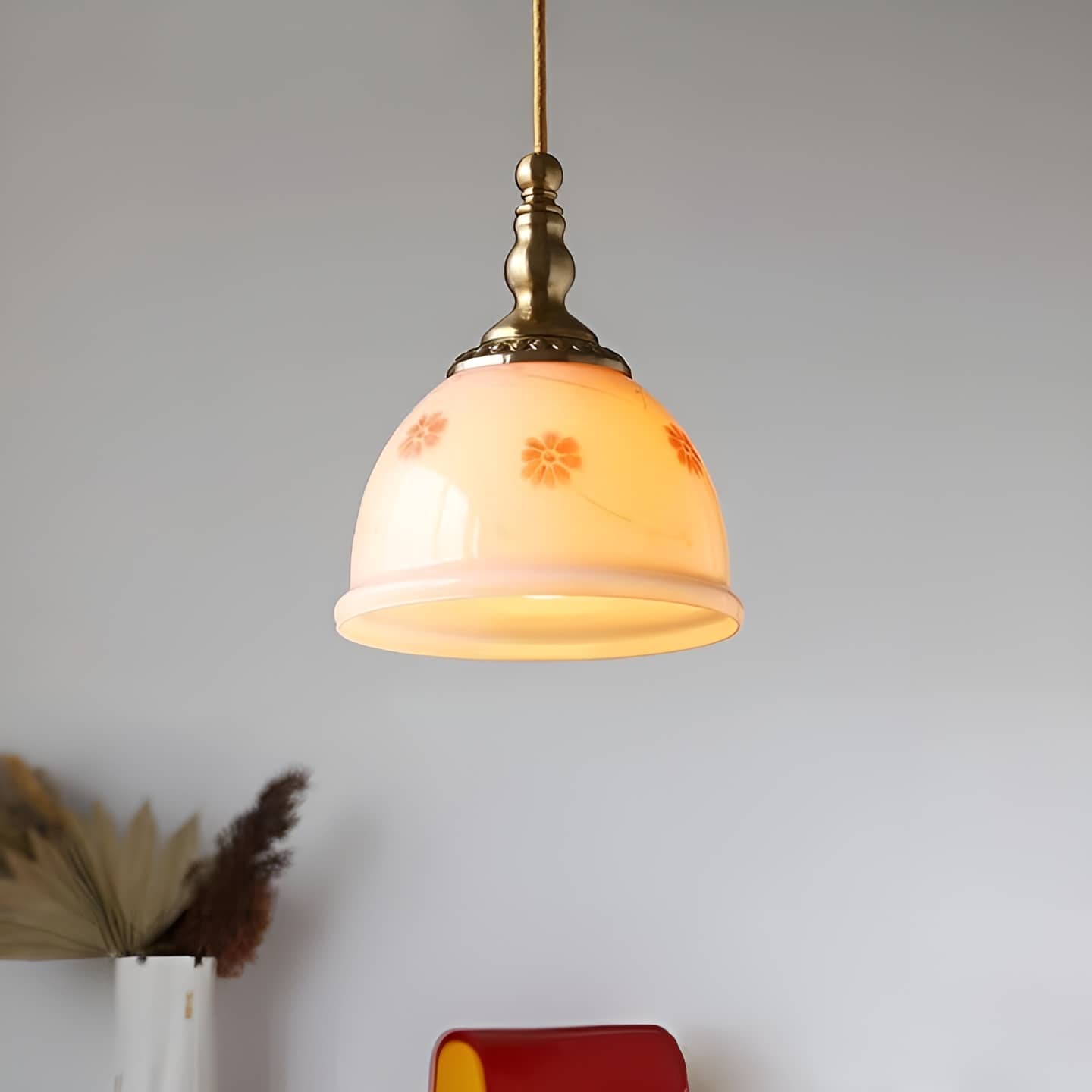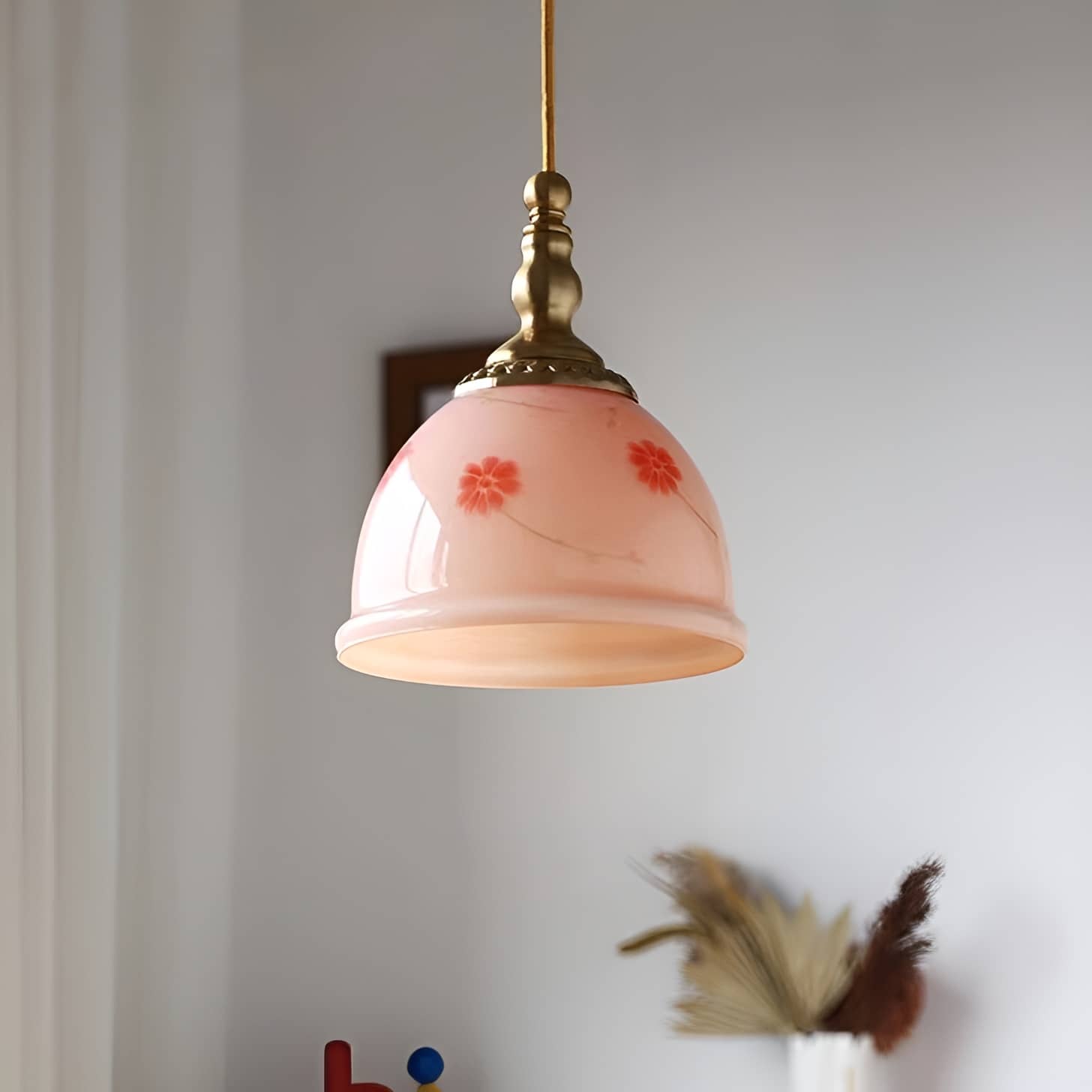 Retro Dome Pink Glass Pendant Light -