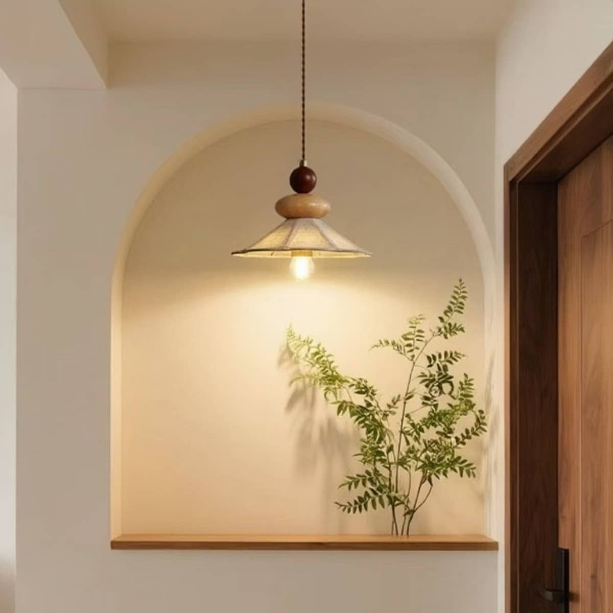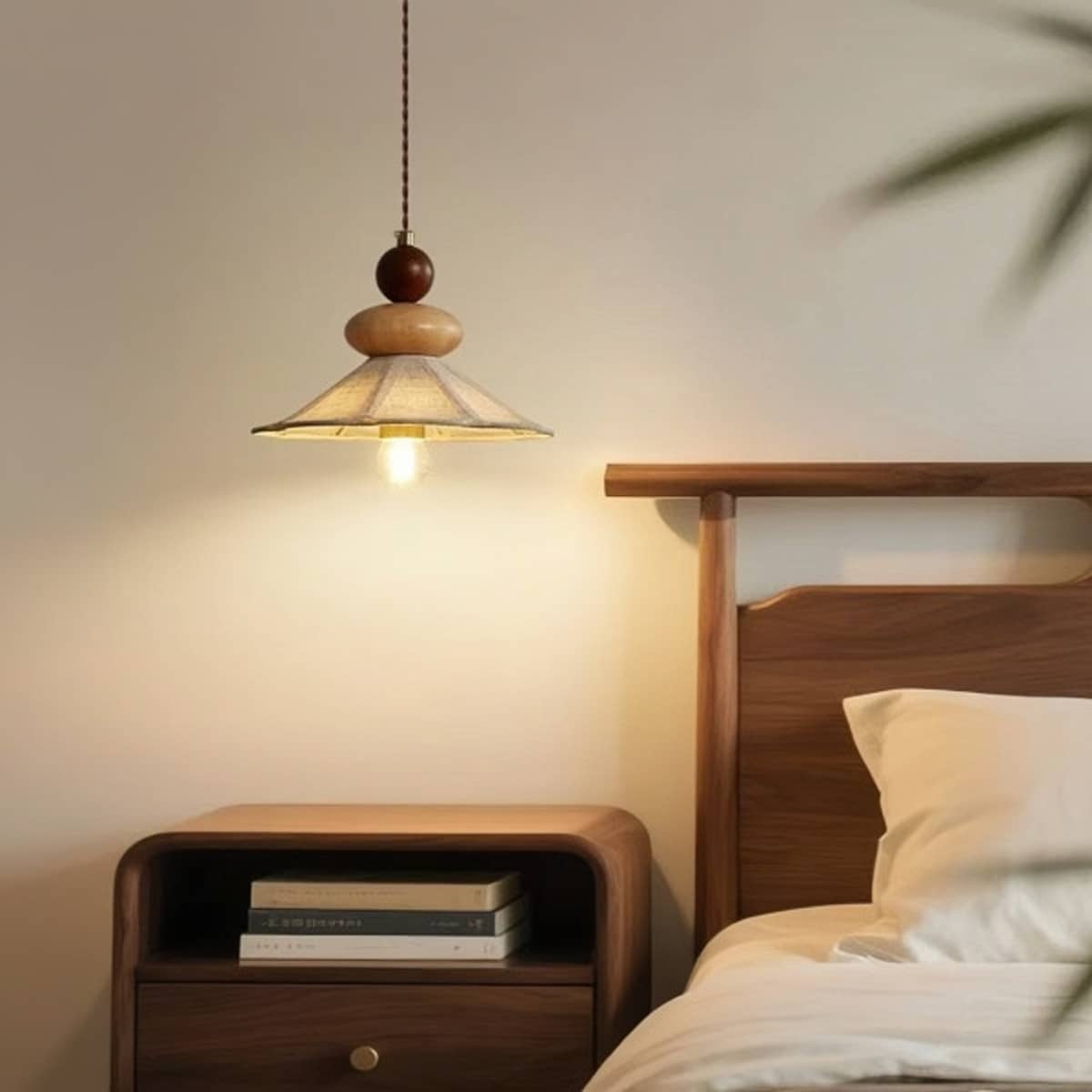 Japandi Fabric Shade Bedside Hanging Lamp -