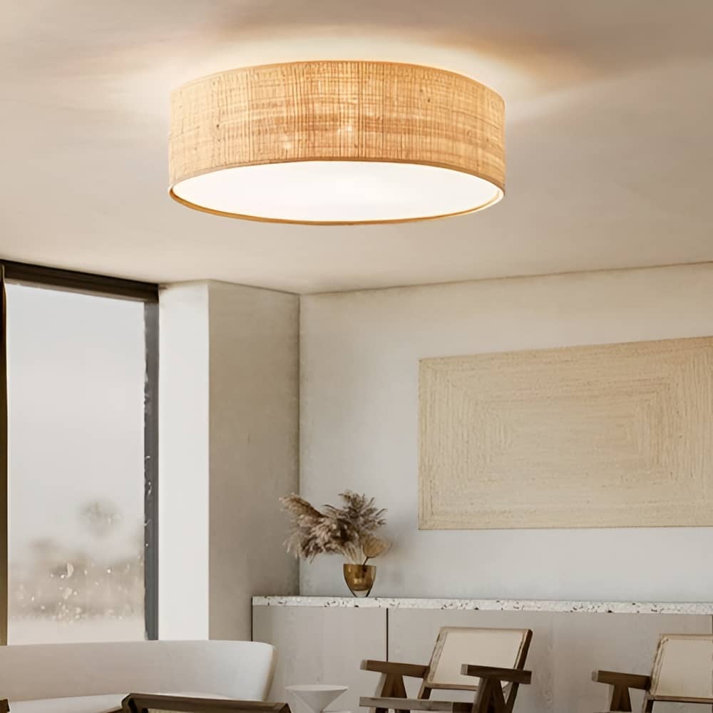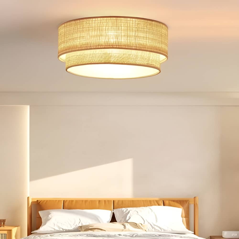 This simple ceiling light features a stylish and organic design, characterized by its round shape. The bamboo rattan weave gives the round led ceiling light a warm, earthy texture that diffuses light softly. This natural ceiling light is available in two distinct designs—a simple one-layered version for a clean, understated look, and a double-layered version that adds depth and dimension. The overall look blends minimalist aesthetics with a cozy charm.