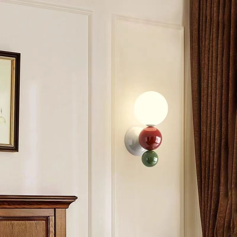 This Nordic LED Colorful Ball Wall Light mimics a playful stack of colorful milk beans, adding a layered and stylish touch to any space. Available in three striking color combinations—bright white, bright white with red, and green with red—this Colorful Wall Light sets unique moods for various interiors. Crafted with a durable plastic lampshade and an iron lamp body, the Cream Wall Light features an LED light source with three color dimming options.