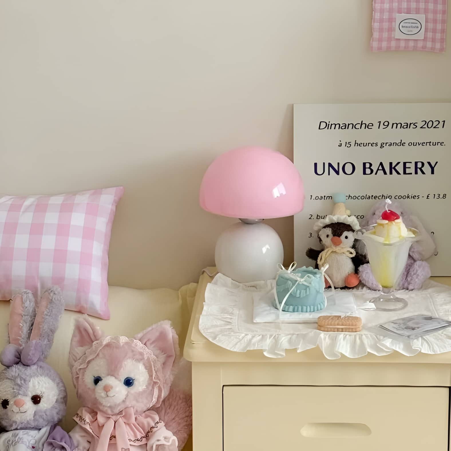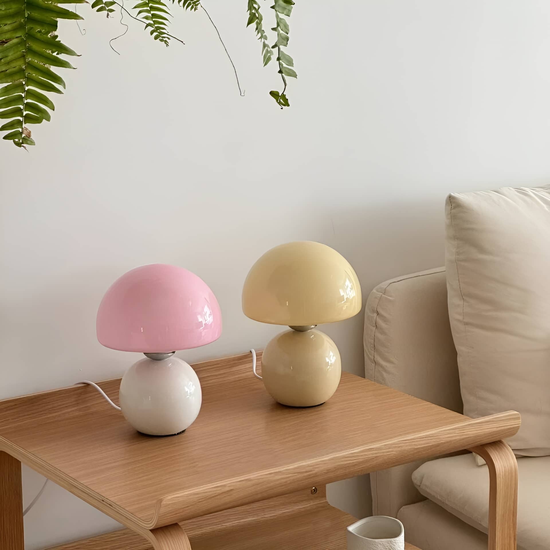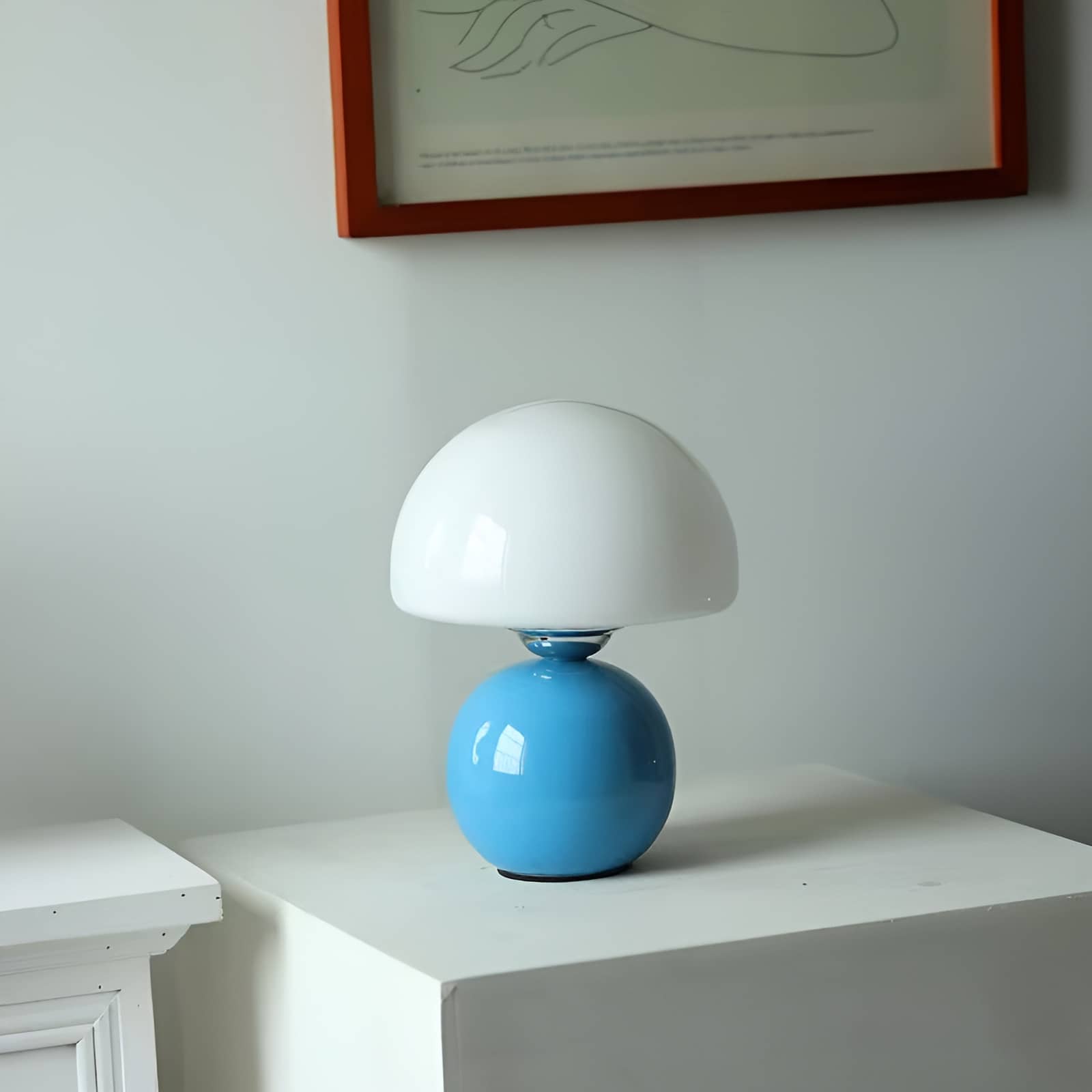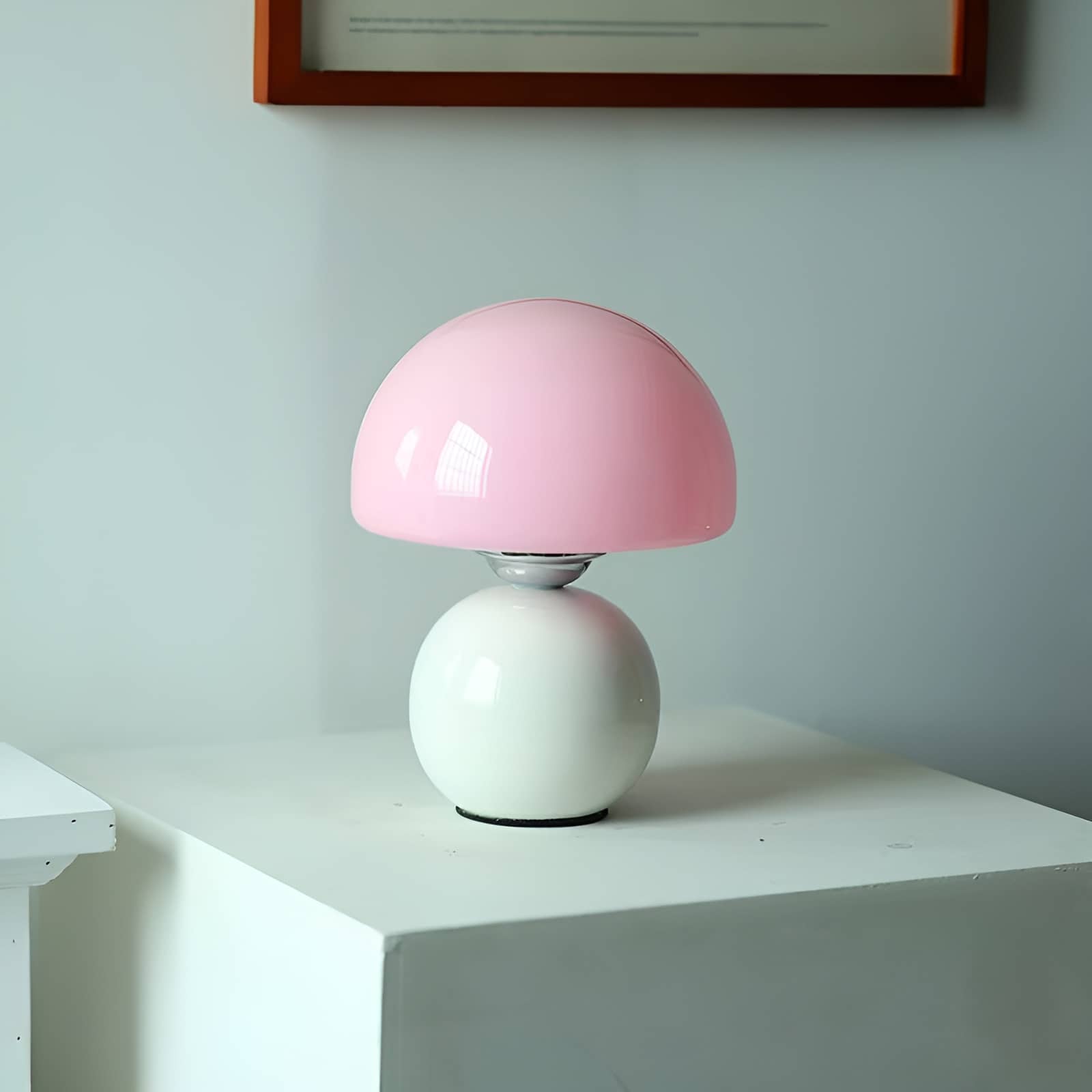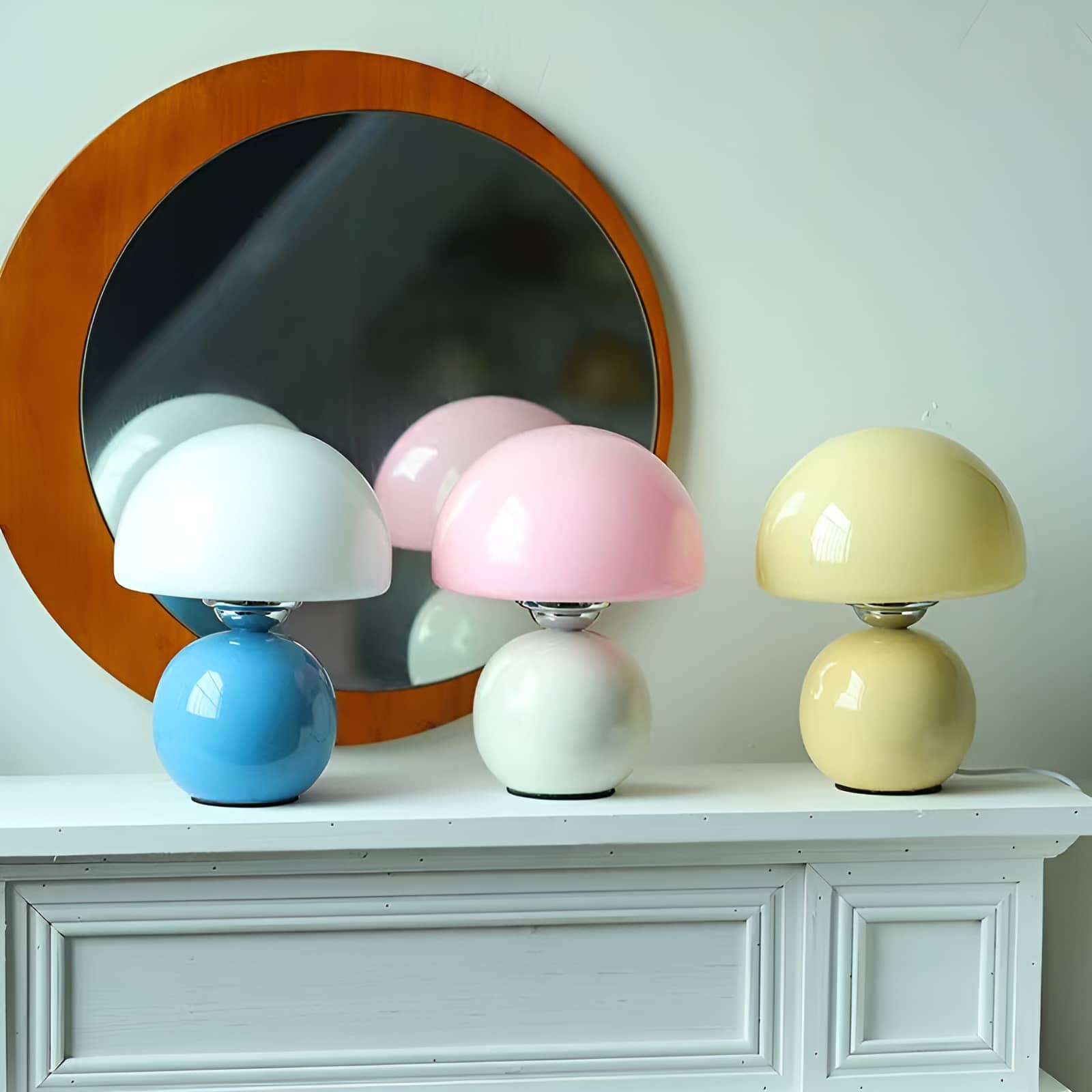 Bring a playful touch of Scandinavian charm to your space with this small glass table lamp. Featuring a smooth, glossy ceramic base paired with a rounded glass mushroom shade, this cute table lamp blends retro aesthetics with modern minimalism. The soft pastel tones—blue, pink, and creamy yellow—add a cheerful accent to any bedroom, nursery, or reading corner. Perfect for creating a warm, ambient glow, this Scandi table lamp is both functional and decorative.